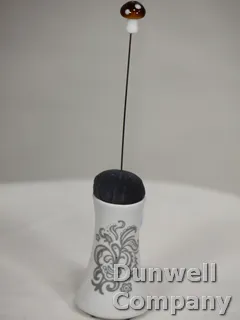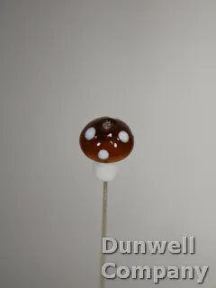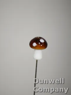 Small Glass Brown and White Mushroom hatpin set on a 4 ½ shaft with protective tip.
