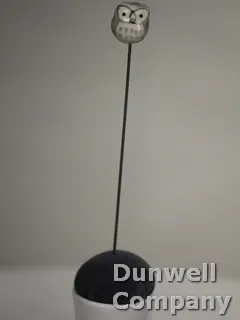 Grey glass owl hatpin set on a 4 ½ shaft with protective tip.