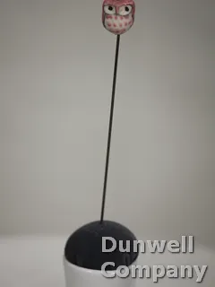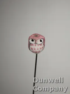 Pink glass owl hatpin set on a 4 1/4 shaft with protective tip.