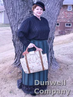 Carpet Bag - Green, Brown and Tan Ginko leaf Brocade Fabric
